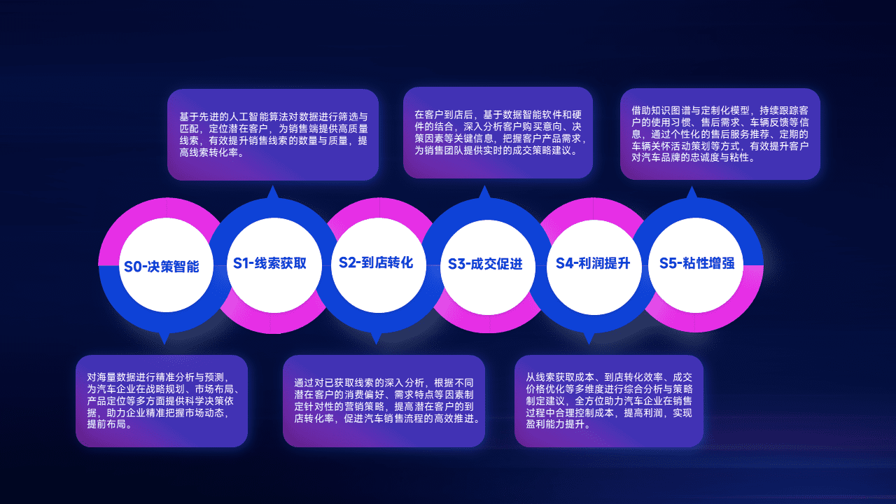 通过拓宽潜在客户来源、、优化线索分配并提高到店转化率,,以增强销售效率。。。同时,,,利用线索数据不断优化分析模型,,,,有效提升转化率,,扩大营销影响力。。。