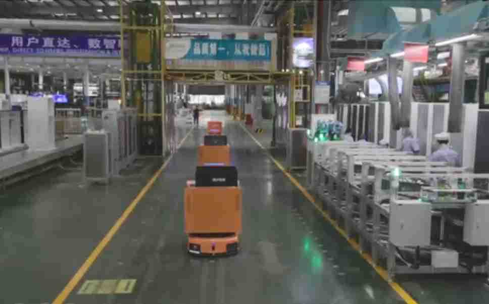 为车载冰箱物流配送打造的智能解决方案,,,,包含产中物流通过潜伏举升AMR搬运至线边,,产后成品物流智能仓储,,,流程包含产中物流智能齐套入库,,,线边安灯叫料AMR智能配送至线边,,,成品入库、、、、出库,,,,通过无人堆高车机器人,,,智能仓储管理替代人工作业管理,,,实现更高存储、、更高效率、、、更具柔性化的解决方案。。